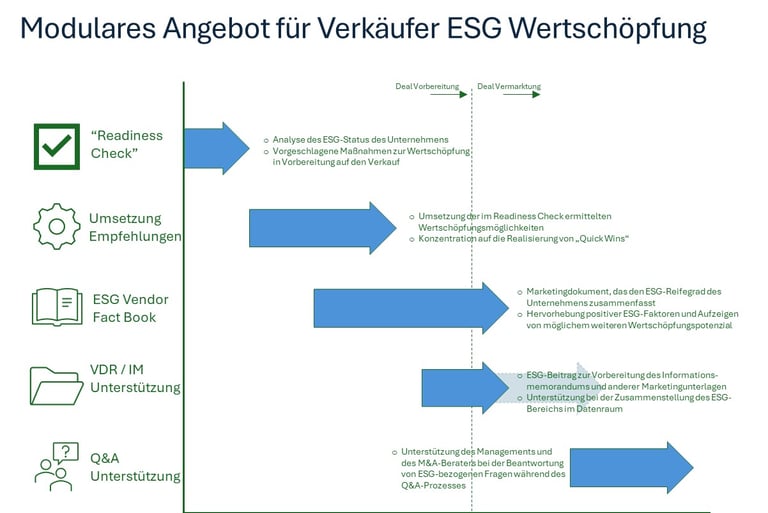 - Optimale Vorbereitung auf die ESG-Anforderungen der möglichen Käufer - sowohl Finanzinvestoren als auch strategische Käufer thematisieren ESG im Rahmen ihrer Due Diligence immer stärker